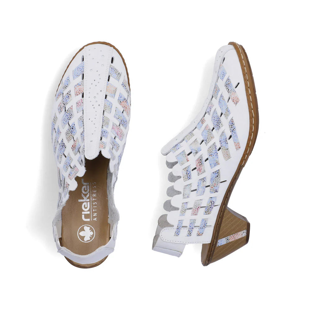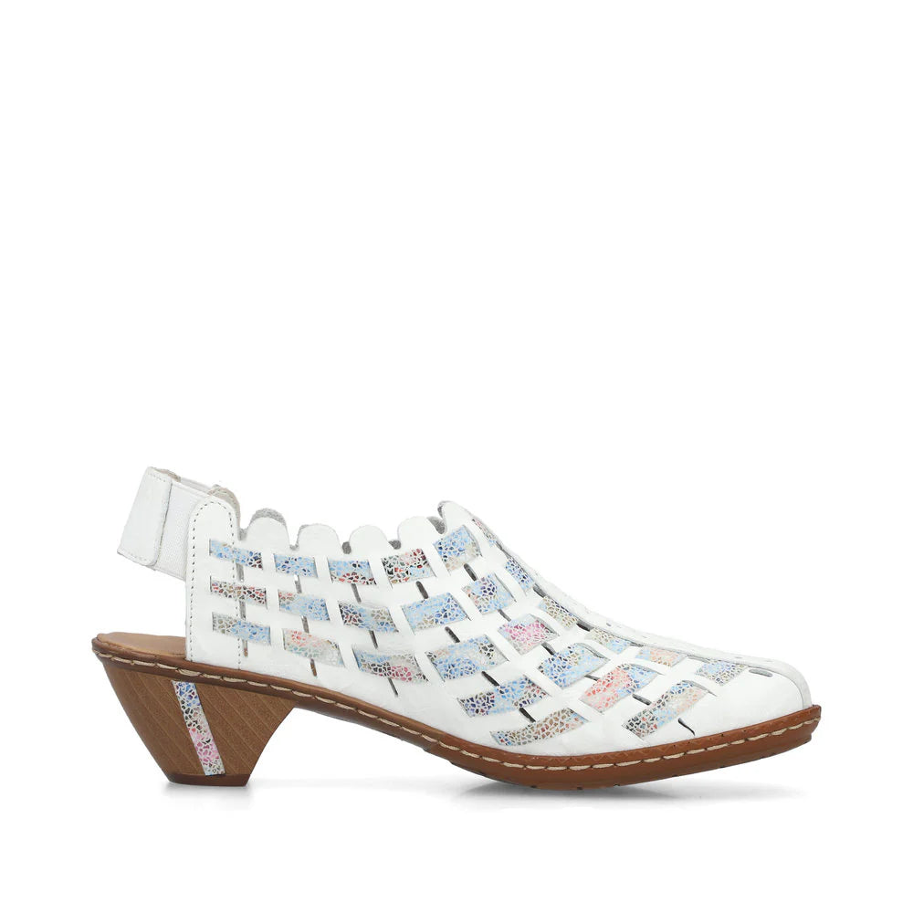 Maximum comfort every step of the way! These white-beige Rieker slingback pumps made of smooth leather combine Rieker style with practical elegance. The stitchdown construction makes this shoe a particularly durable and flexible companion. In addition, the shoe fits like a glove thanks to the elastic band. The light, shock-absorbing sole with block heel provides comfort with every step. The narrow fit gives the foot extra support. All in all, the perfect blend of style and comfort!