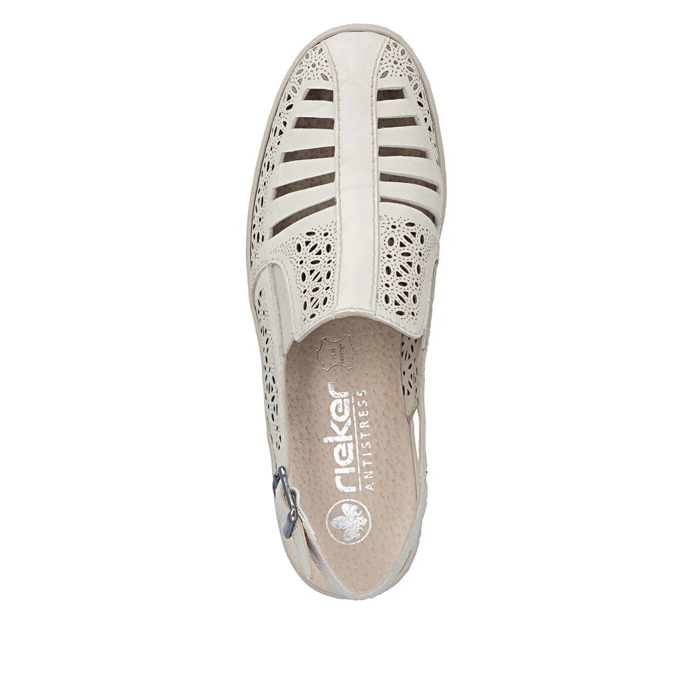 Maximum comfort every step of the way! With these beige Rieker slingback pumps made of smooth leather, you can master your everyday life with maximum style and comfort. Thanks to the stitchdown construction, this shoe is particularly durable and flexible. The elastic bands also ensure that the shoe fits at all times. Stylish eye-catchers are the elegant decorative perforations. The light and shock-absorbing sole with wedge heel promises grip and the extra soft cover sole is another plus. Furthermore, the narrow fit provides extra support. Attention, potential favourite shoes.