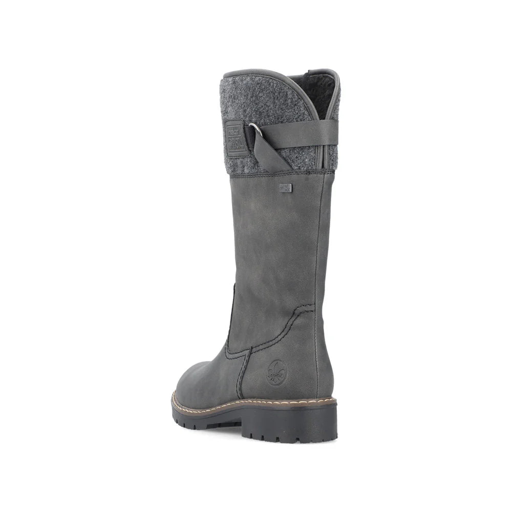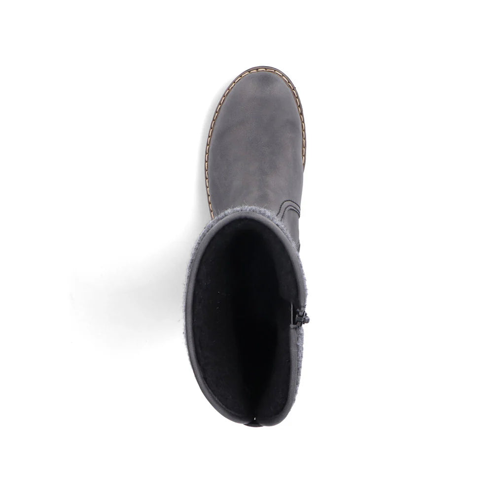 Rêvez en gris ! Ces bottines Rieker gris foncé allient style et fonctionnalité pour les temps frais. Fabriquées avec une construction cousue, elles sont robustes, flexibles et offrent un ajustement parfait. La fermeture éclair facilite l'enfilage et le retrait. Leur semelle antidérapante empêche les glissements et leur semelle de recouvrement est ultra-douce. Vos pieds resteront au chaud toute la journée grâce à la doublure douillette et au sec grâce à la technologie RiekerTEX. Que demander de plus !